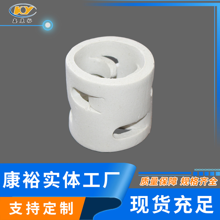 康裕陶瓷鮑爾環(huán)填料是一種高徑相等的開(kāi)孔環(huán)型填料,每層窗孔有5個(gè)舌葉,每個(gè)舌葉內彎指向環(huán)心,上下兩層窗孔的位置相反錯開(kāi),一般開(kāi)孔面積約占環(huán)壁總面積的30%左右。