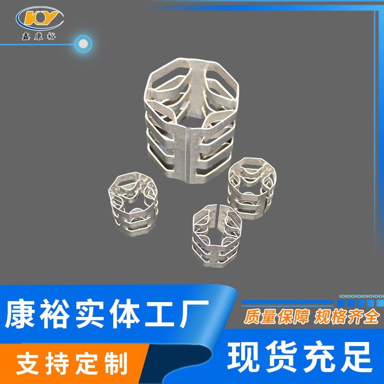 康裕金屬八四內弧環(huán)類(lèi)似花環(huán)開(kāi)關(guān)的金屬填料,也稱(chēng)麥勒環(huán)填料。它的特點(diǎn)是環(huán)壁開(kāi)敞面積大,所以具有通量大、阻力小和傳質(zhì)效率高等特點(diǎn)。